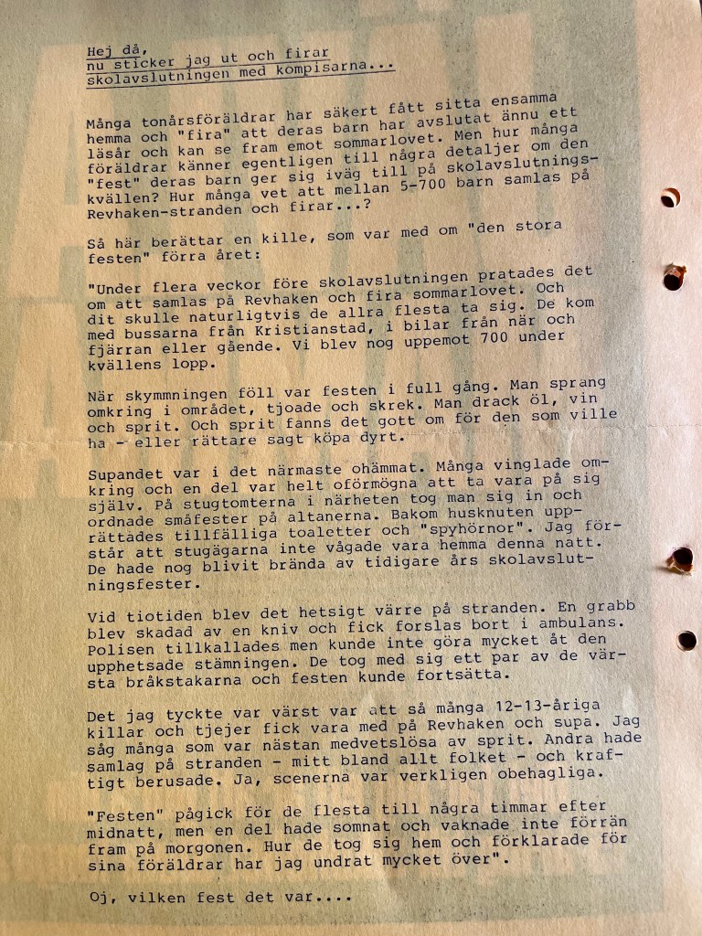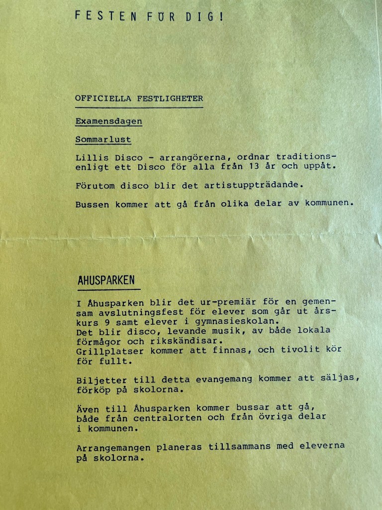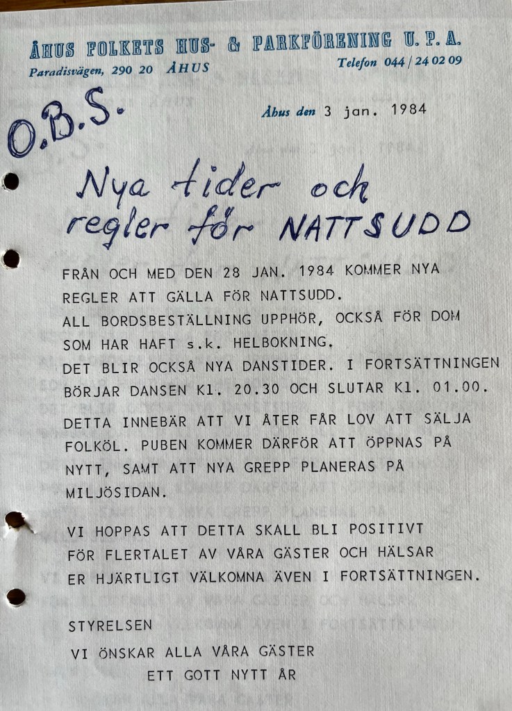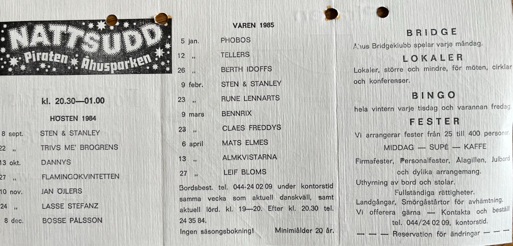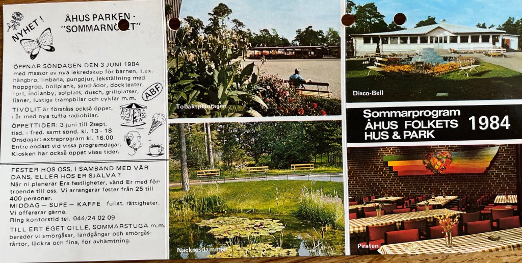 Folkets hus hade rustats upp och fått nytt modernt kök. Man hade detta året den mest besökta Maria Magdalenamarknaden sedan starten. 1984 var ”Sommarnöjet” den stora nyheten. Där var ett fort, indianby, hängbro, linbana, klätterställningar, sandlådor, gungor, dusch, solplatser, grillplatser, blomsterplanteringar m.m. Detta var öppet dagtid och mycket populärt. 1984 var året då det blev klart med berg och dalbanan, vecka 14 våren 1985 skulle den anlända från Holland! Piraten hade ett snitt på 509 besökare under sommarsäsongen. Man lanserar höstens danser på Piraten, ”Piraten-sudd” i samand med detta erhöll man tillstånd att servera vin och starköl.