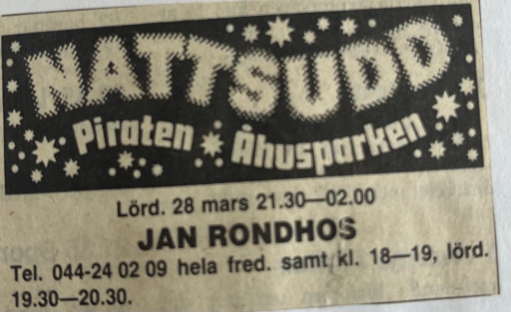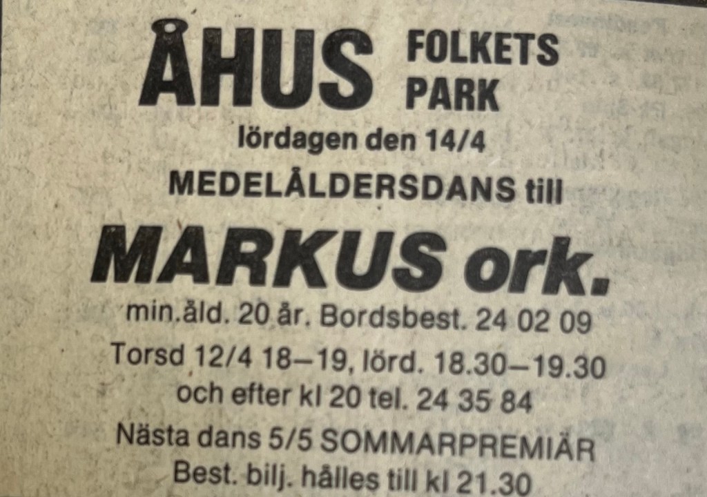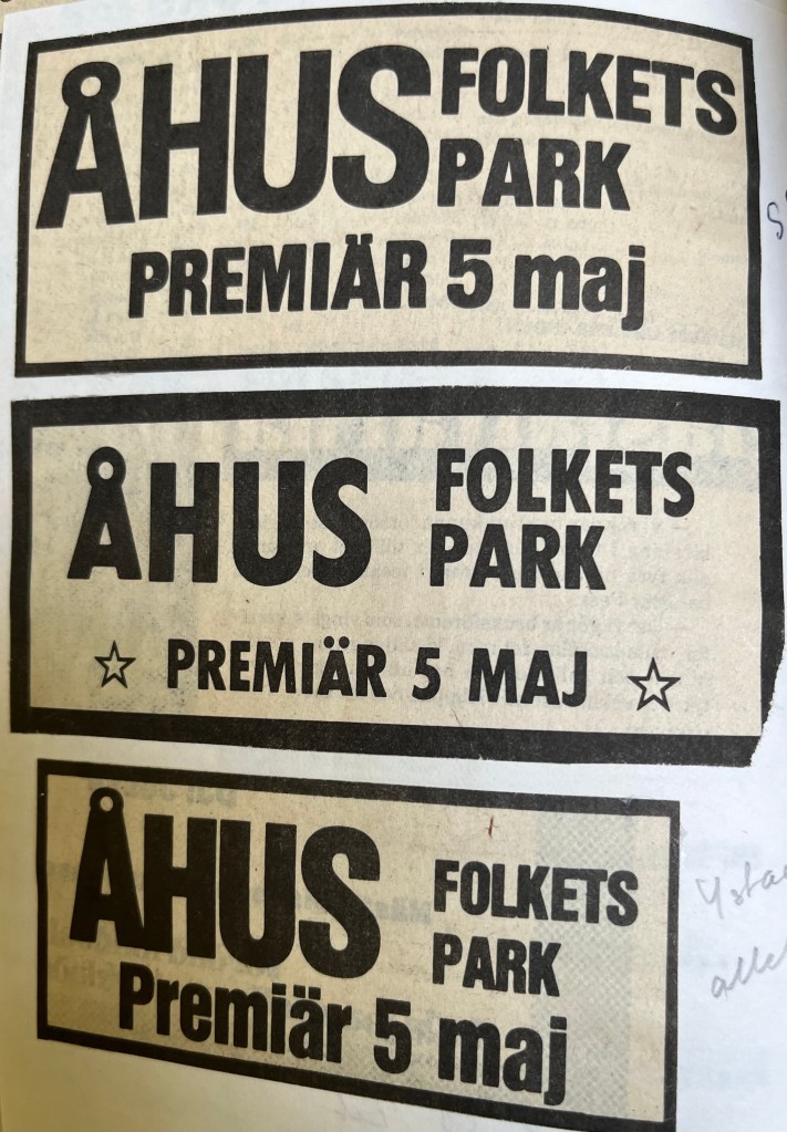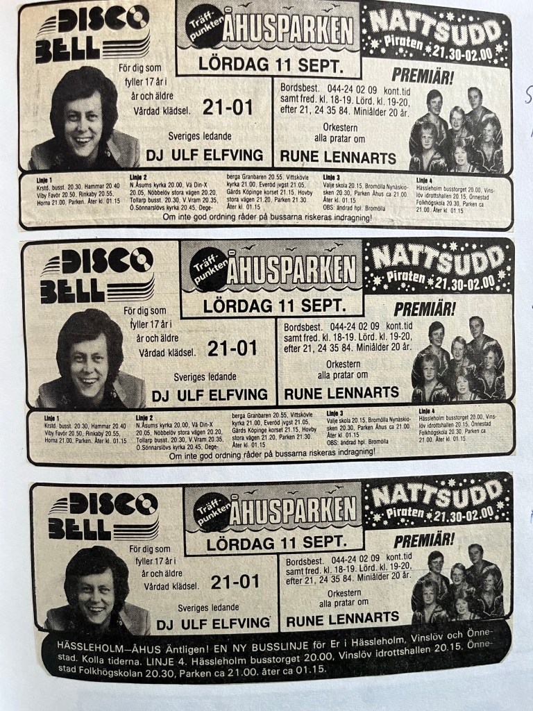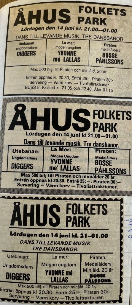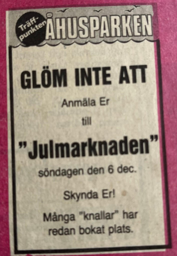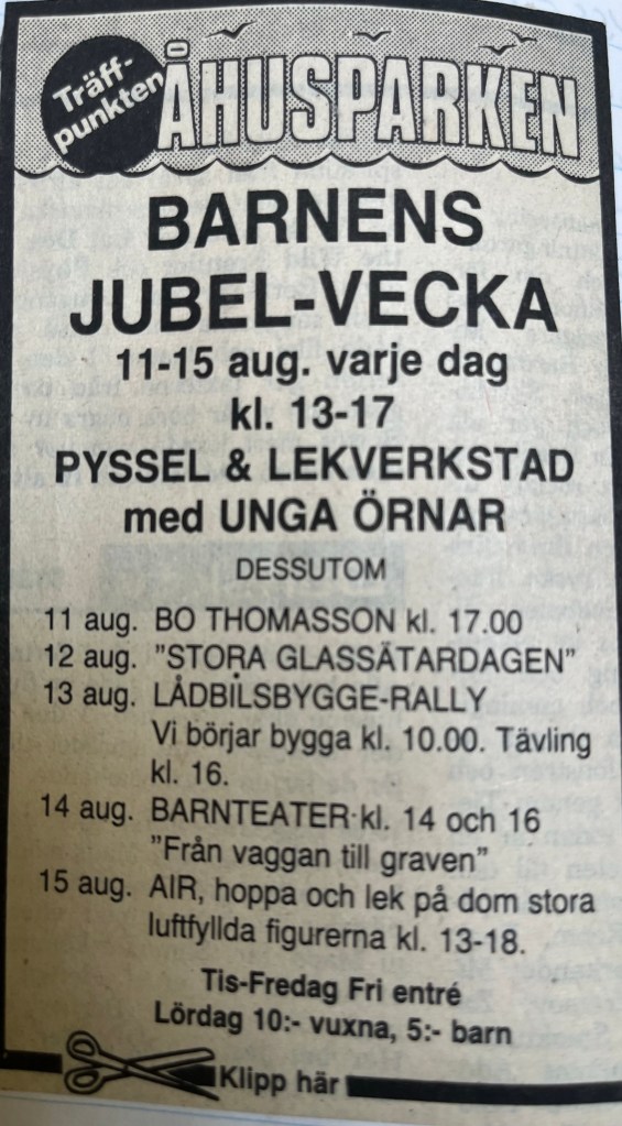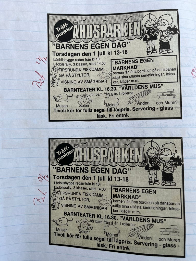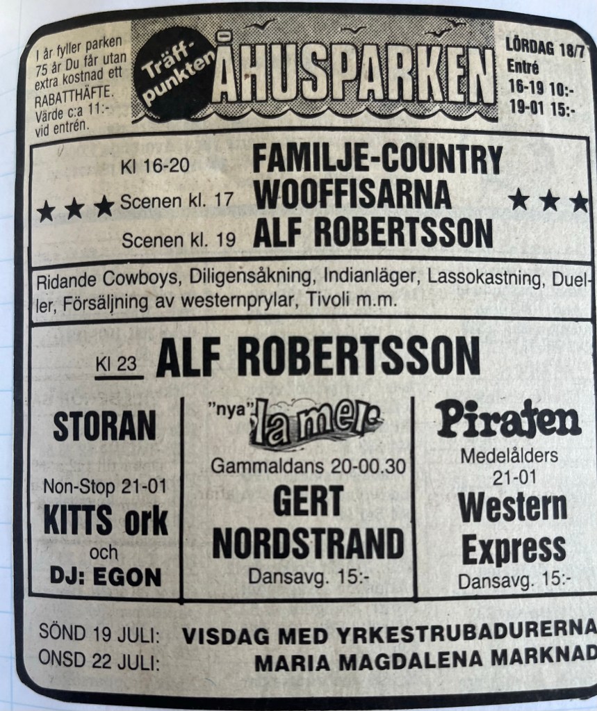 V OMMEN på! Och några annonser där några bokstäver hänger på sned i ordet VÄLKOMMEN! Eleverådet från Sånnaskolan arrangerade disco under vintertid. 1982 bildade parken ett ungdomsråd med Maria Anderberg i spetsen. Åhusparken firade 75 år 1981 vilket också uppmärksammades i annonserna. Klicka på bilderna för att se de i full bredd.