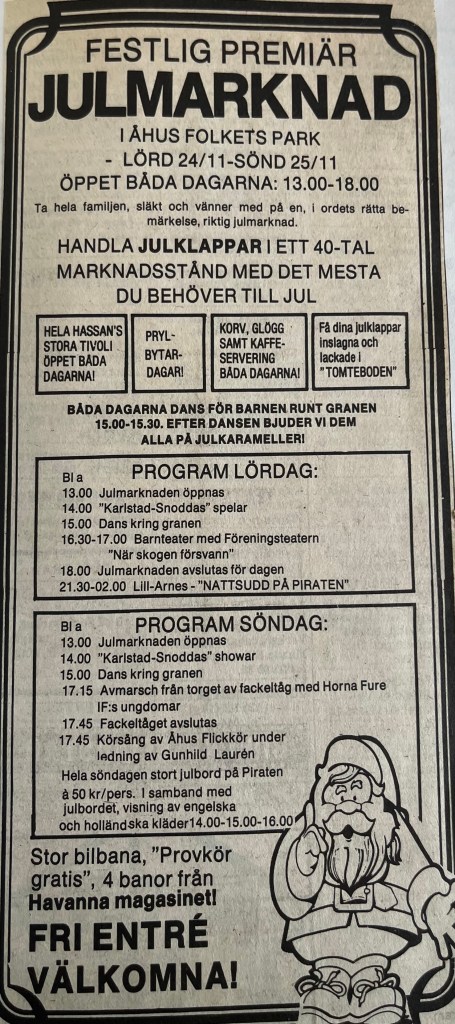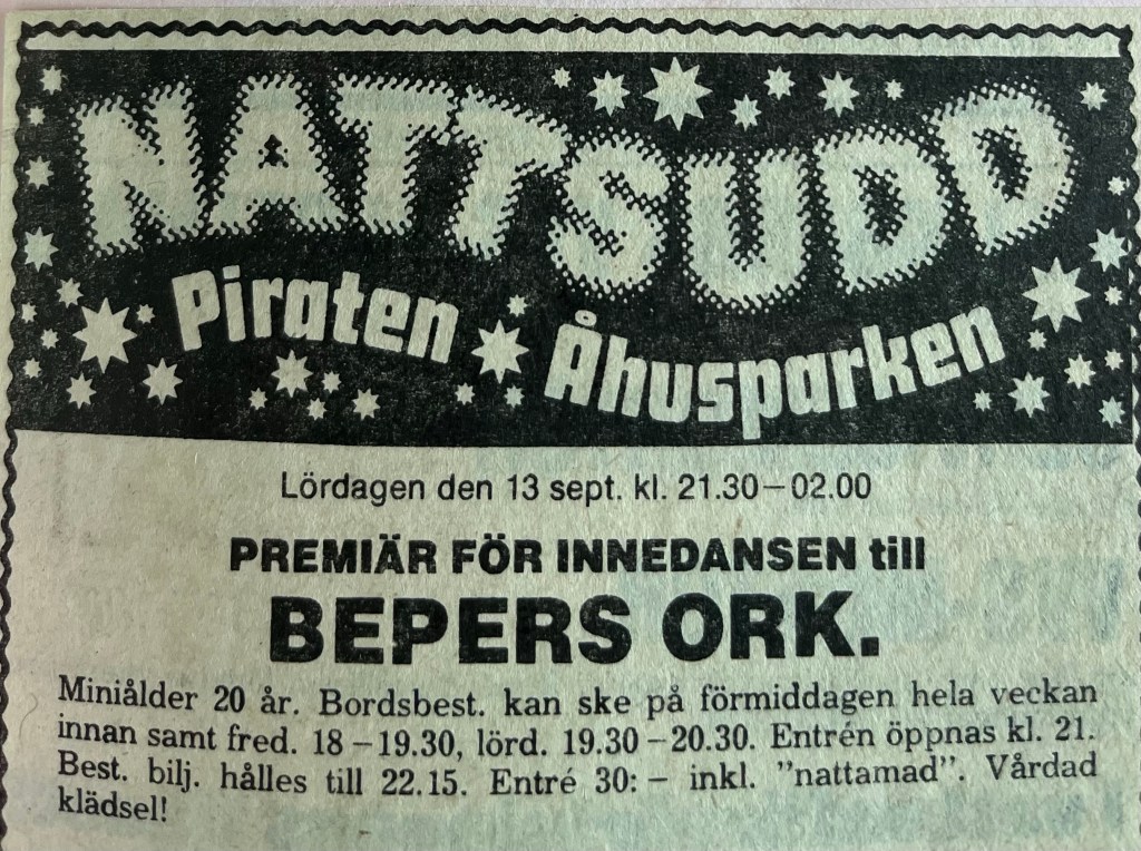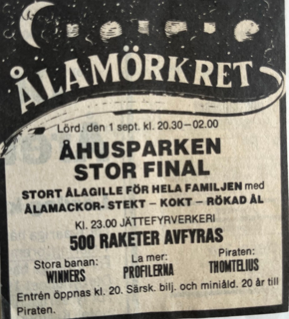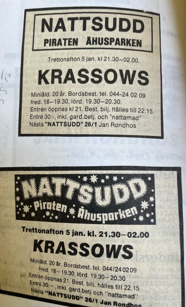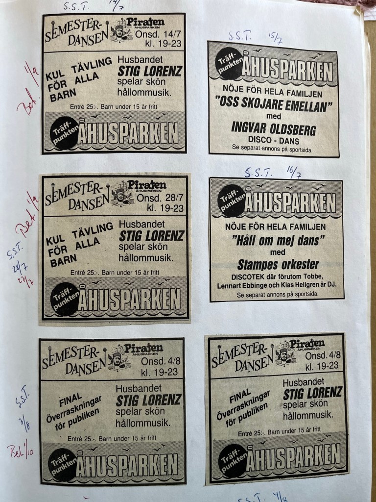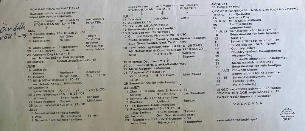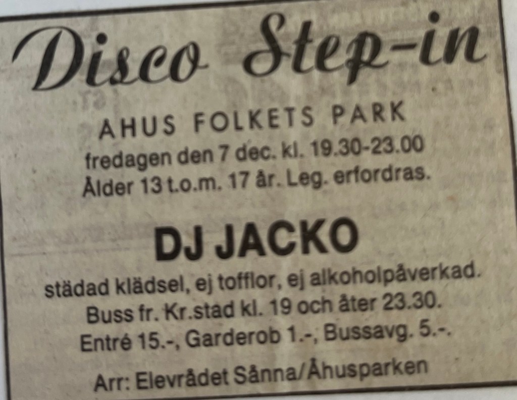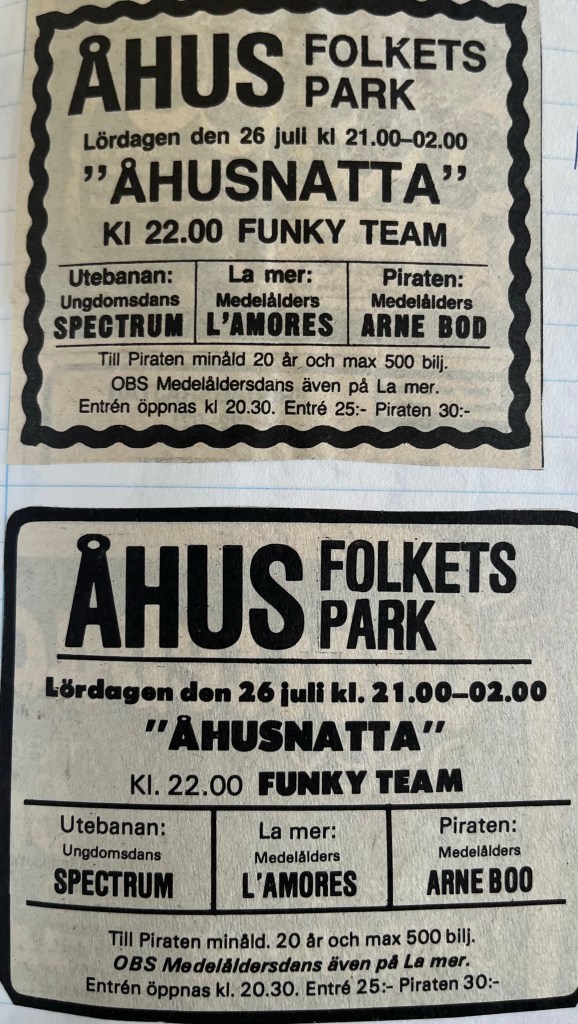 V OMMEN på! Och några annonser där några bokstäver hänger på sned i ordet VÄLKOMMEN! Eleverådet från Sånnaskolan arrangerade disco under vintertid. 1982 bildade parken ett ungdomsråd med Maria Anderberg i spetsen. Åhusparken firade 75 år 1981 vilket också uppmärksammades i annonserna. Klicka på bilderna för att se de i full bredd.