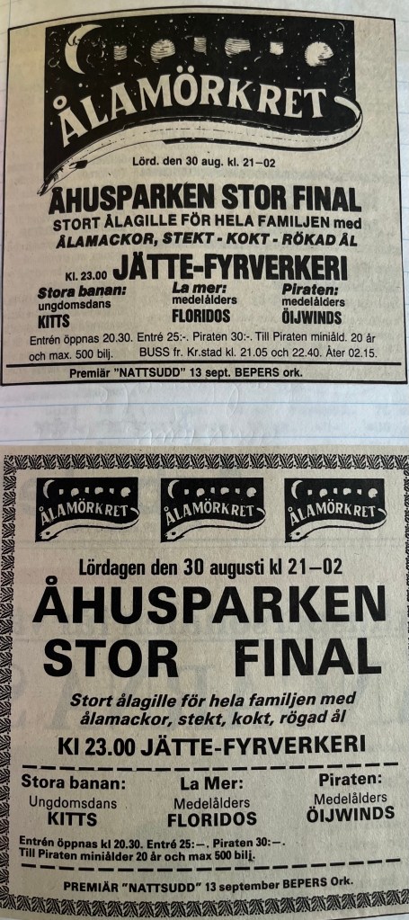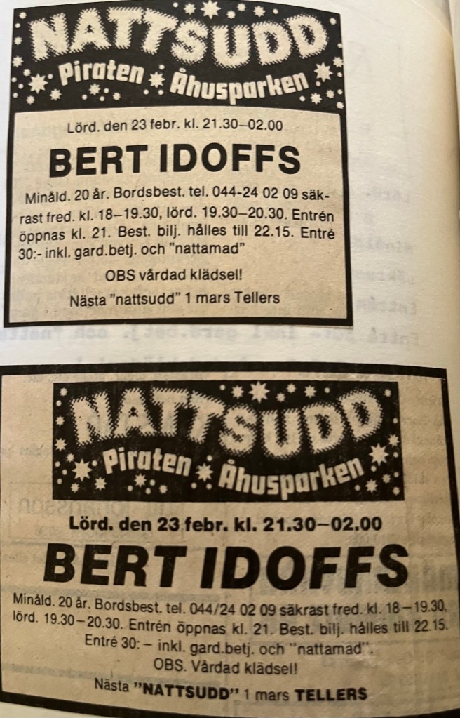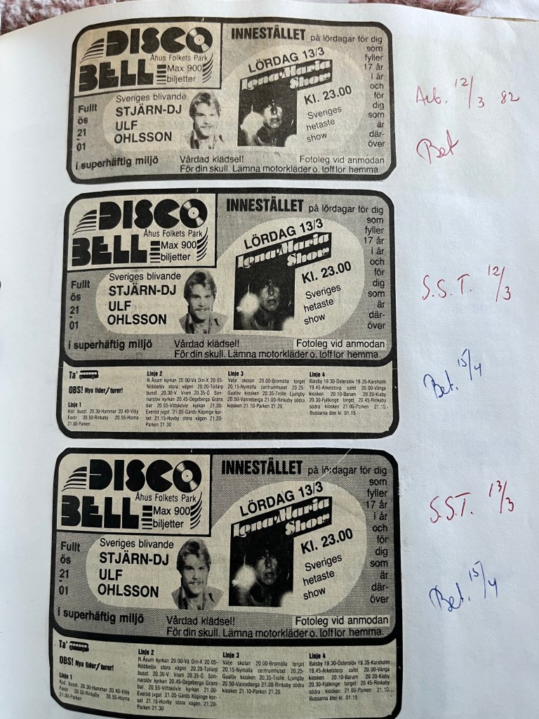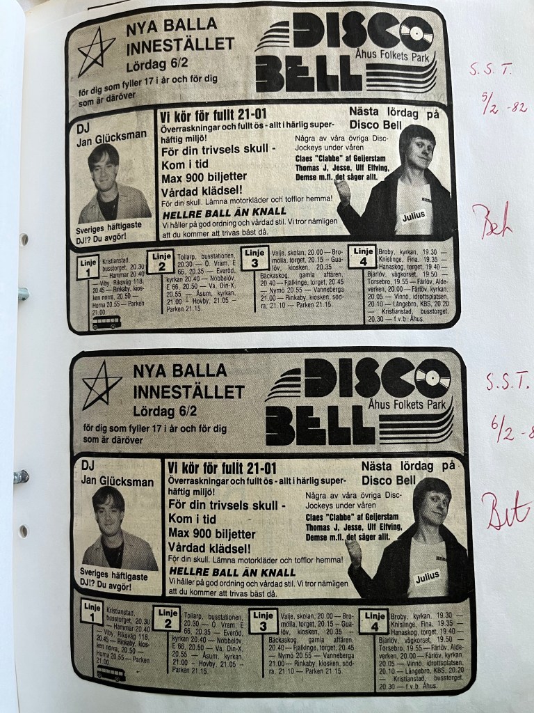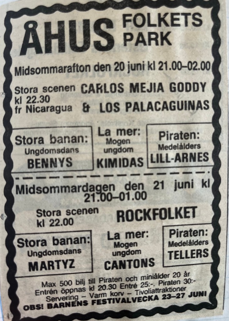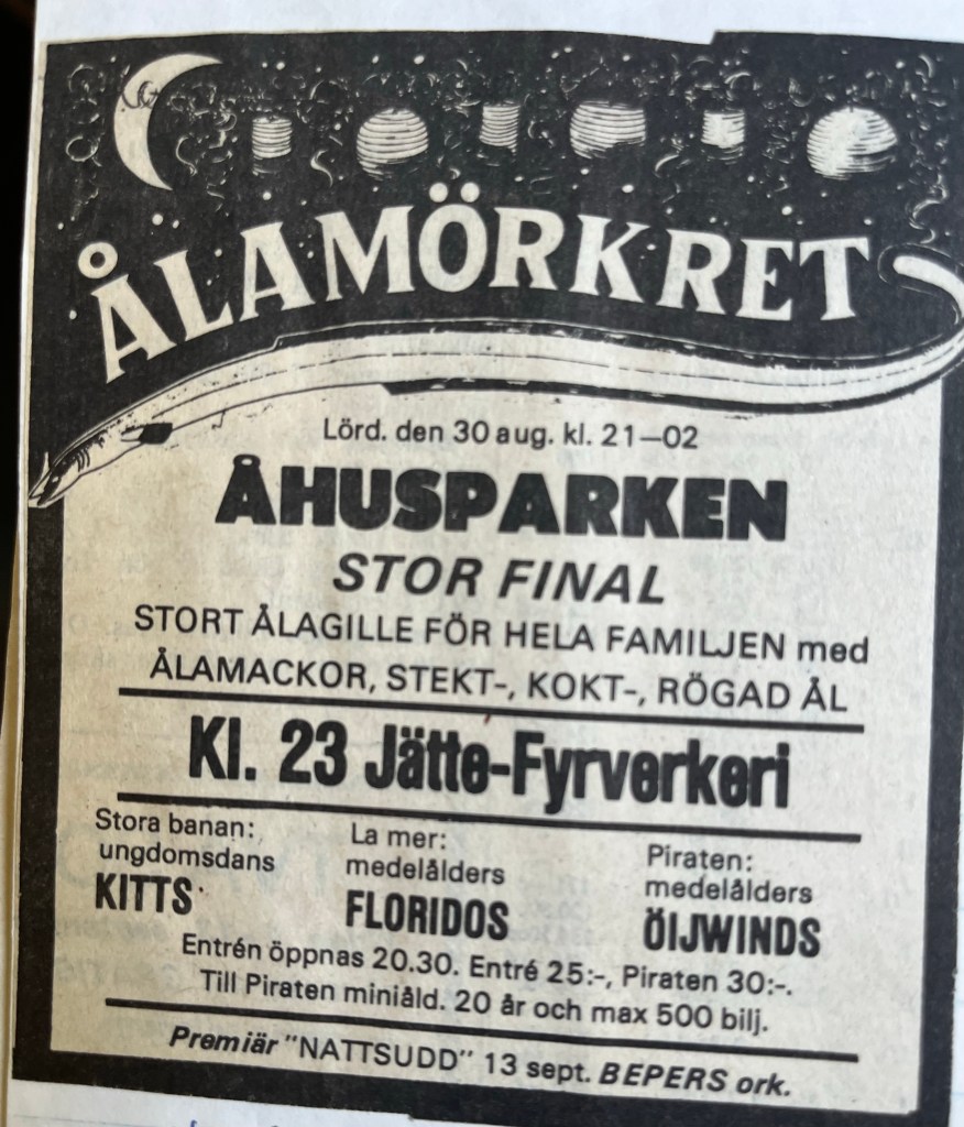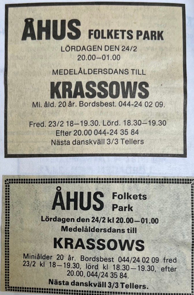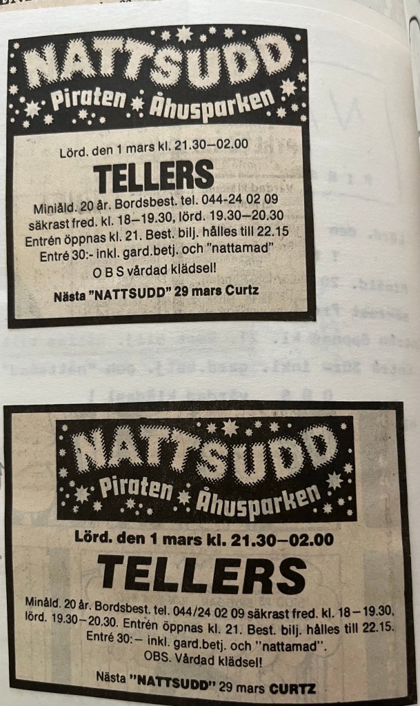 V OMMEN på! Och några annonser där några bokstäver hänger på sned i ordet VÄLKOMMEN! Eleverådet från Sånnaskolan arrangerade disco under vintertid. 1982 bildade parken ett ungdomsråd med Maria Anderberg i spetsen. Åhusparken firade 75 år 1981 vilket också uppmärksammades i annonserna. Klicka på bilderna för att se de i full bredd.
