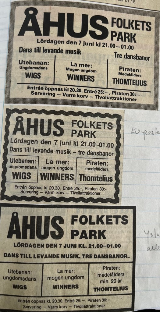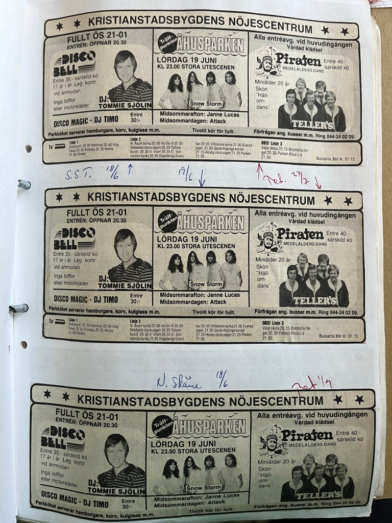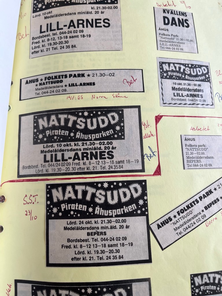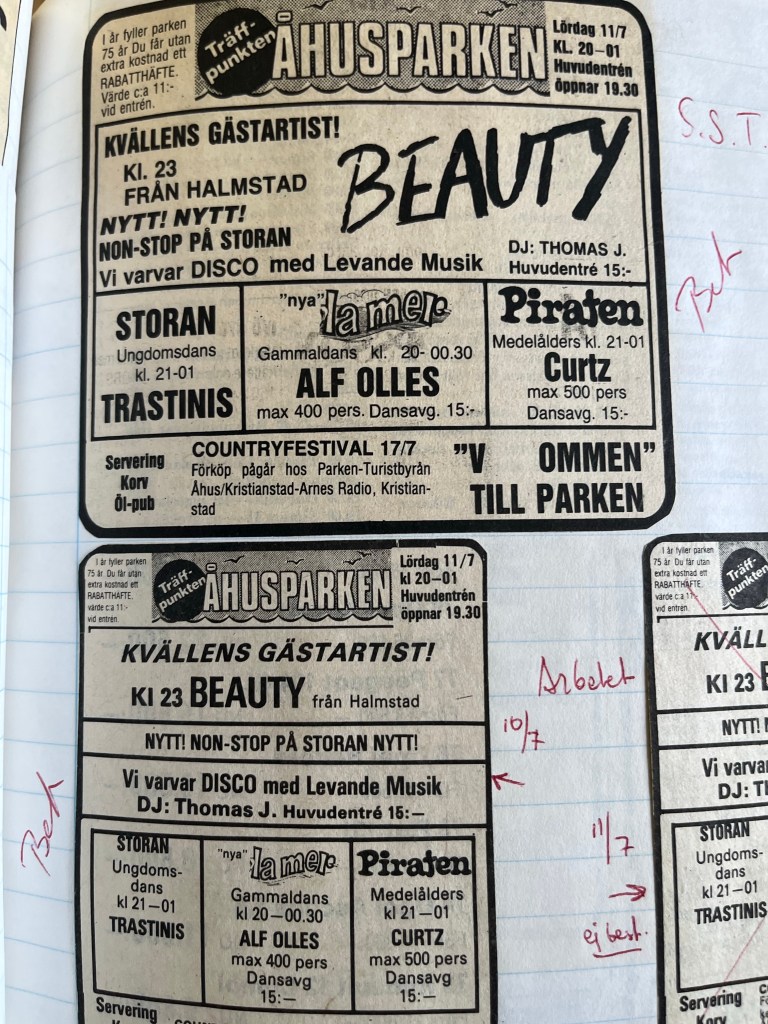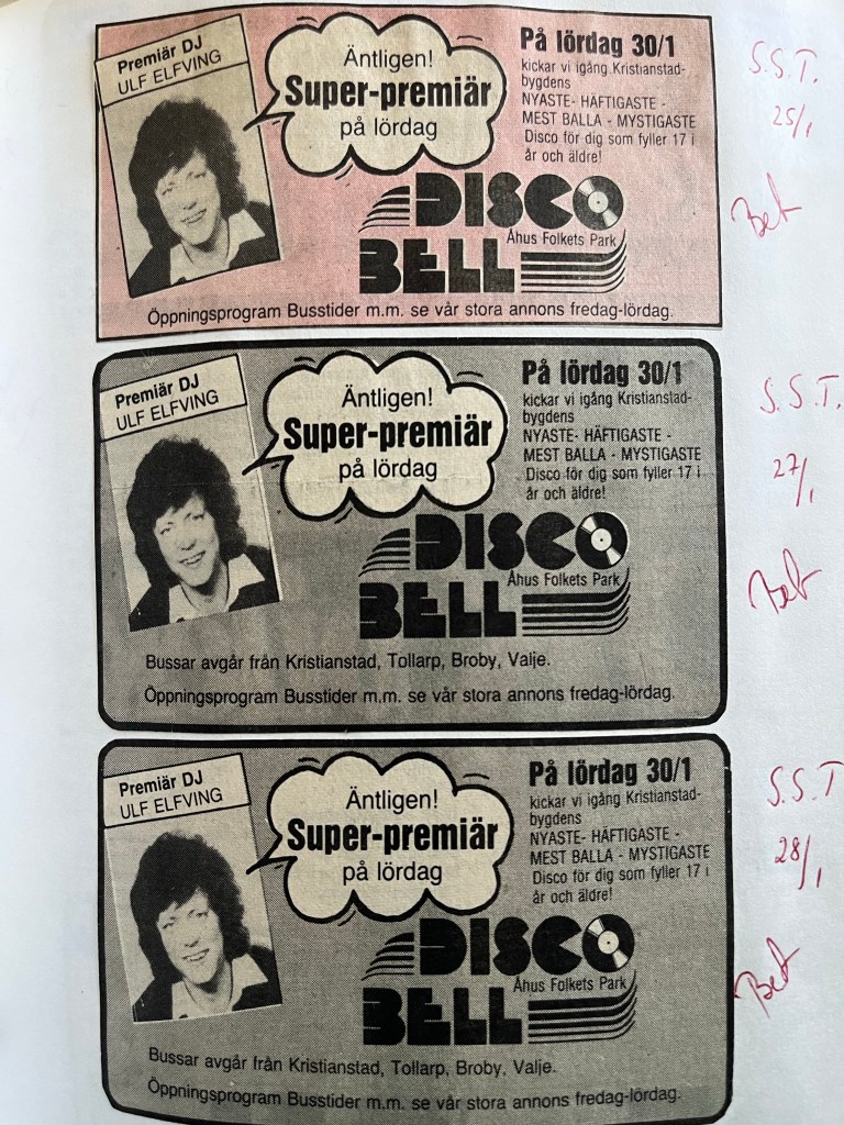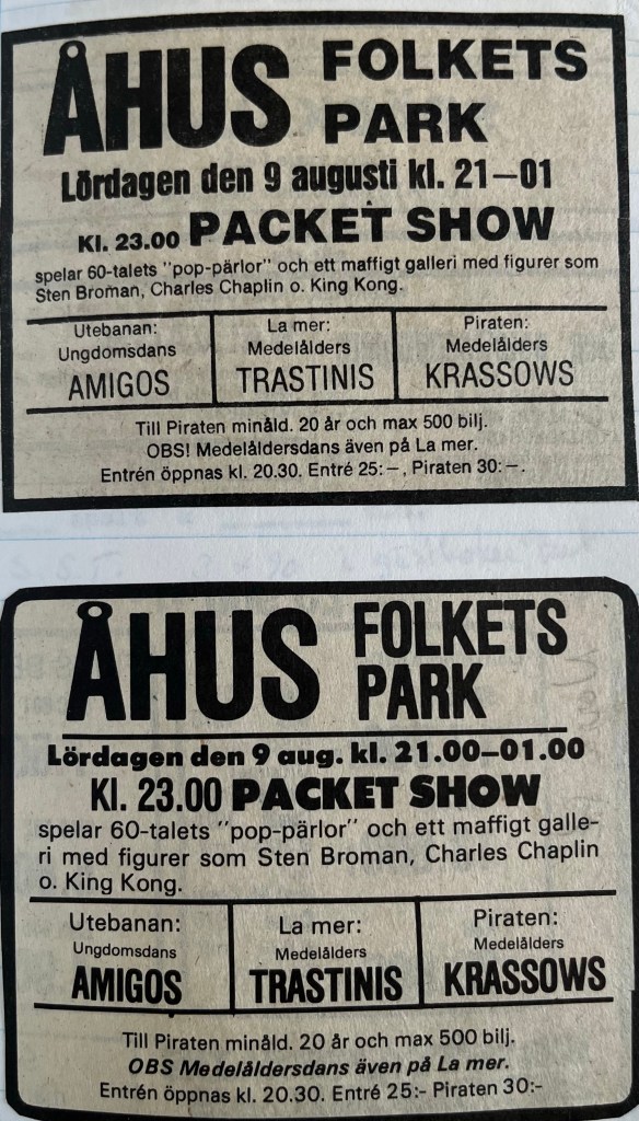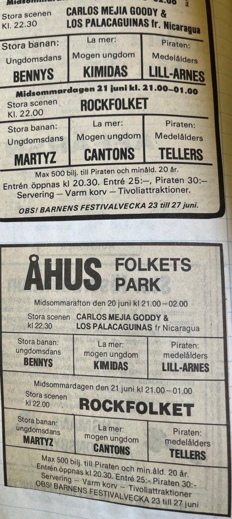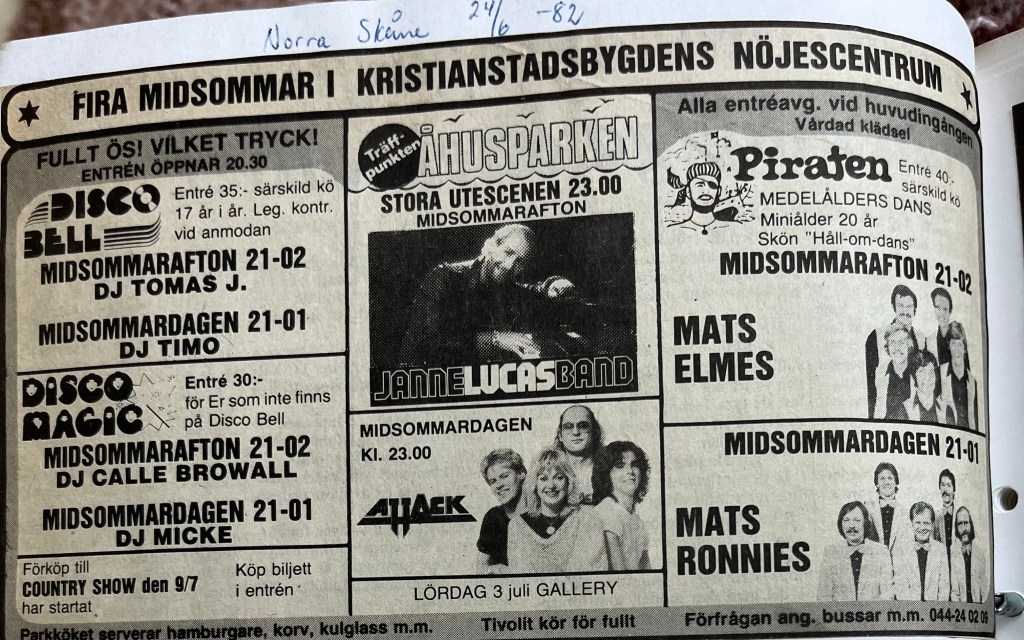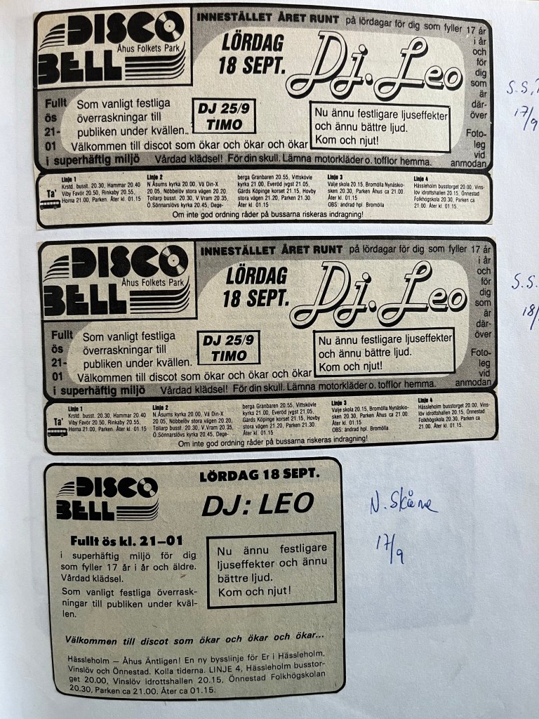 V OMMEN på! Och några annonser där några bokstäver hänger på sned i ordet VÄLKOMMEN! Eleverådet från Sånnaskolan arrangerade disco under vintertid. 1982 bildade parken ett ungdomsråd med Maria Anderberg i spetsen. Åhusparken firade 75 år 1981 vilket också uppmärksammades i annonserna. Klicka på bilderna för att se de i full bredd.