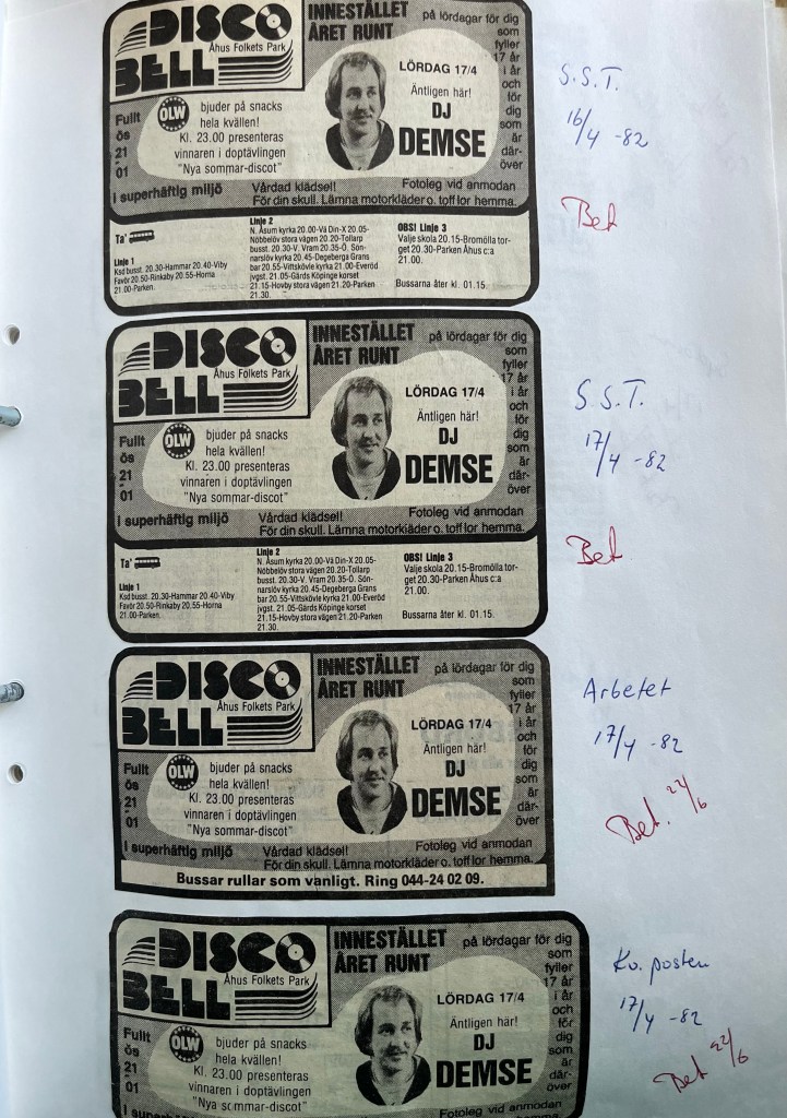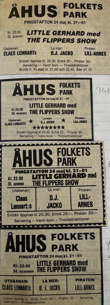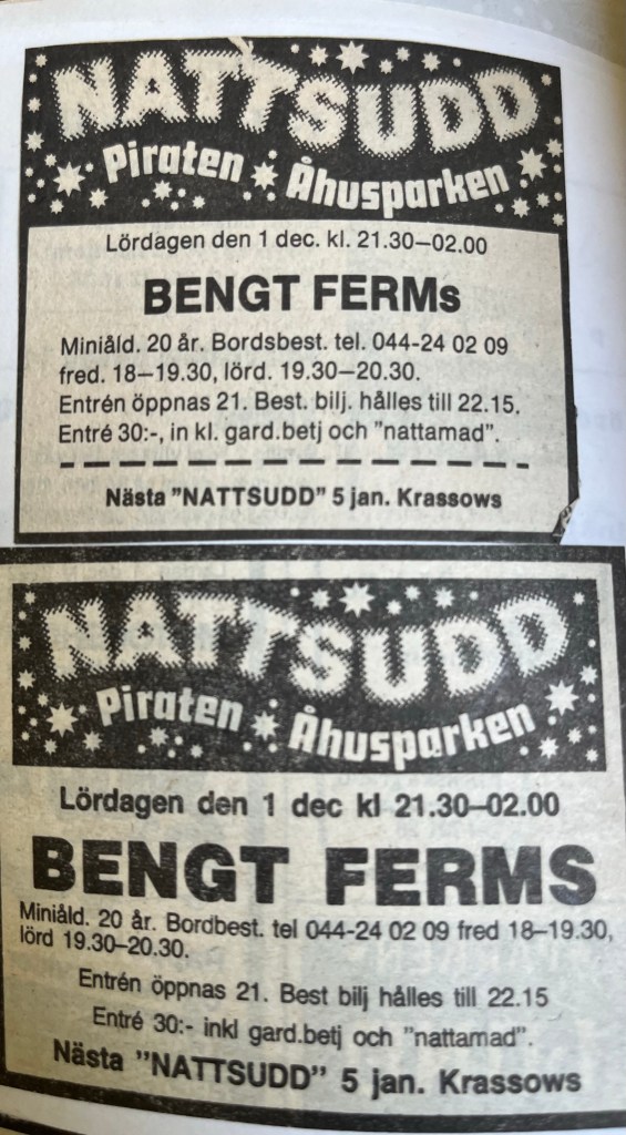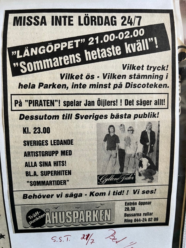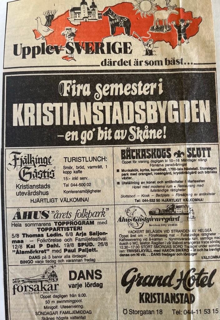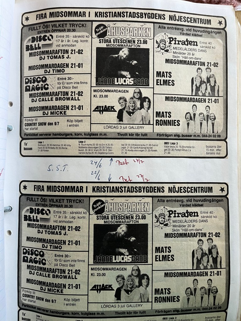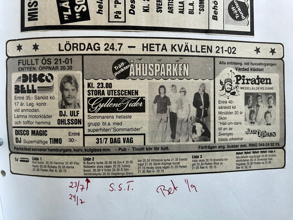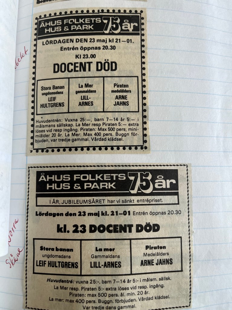 V OMMEN på! Och några annonser där några bokstäver hänger på sned i ordet VÄLKOMMEN! Eleverådet från Sånnaskolan arrangerade disco under vintertid. 1982 bildade parken ett ungdomsråd med Maria Anderberg i spetsen. Åhusparken firade 75 år 1981 vilket också uppmärksammades i annonserna. Klicka på bilderna för att se de i full bredd.